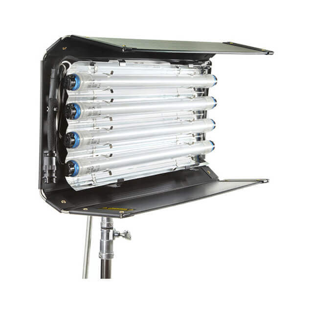 1x 60cm KinoFlo 4bank, 1x Ballasts 4ft 4bank, 1x 7m Cables lamp to ballast, 1x Male 16mm Support, 5x 5600k Tubes, 5x 3200k Tubes, 2x Tube Boxes, 2x Eggcrates, 1x Transport Case
