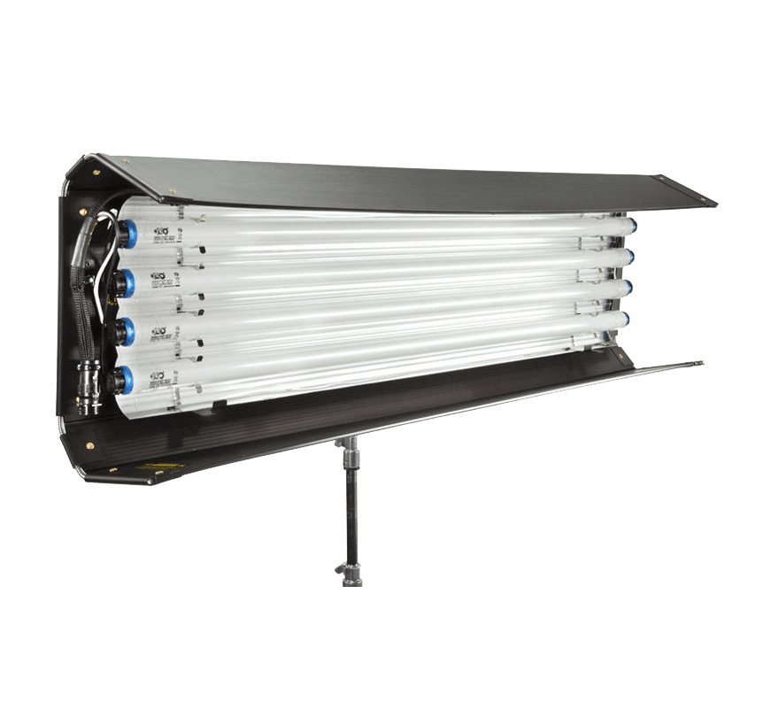 2x 120cm KinoFlo 4bank, 2x Ballasts 4ft 4bank, 2x 7m Cables lamp to ballast, 2x Male 16mm Support, 2x Female 16mm Support, 9x 5600k Tubes, 10x 3200k Tubes, 2x Tube Boxes, 2x Eggcrates, 1x Transport Case