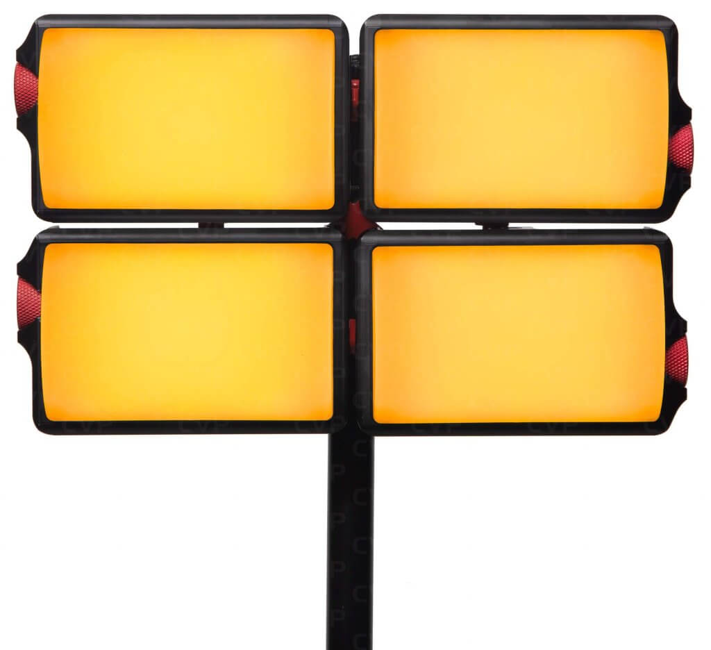 4 x DMG DASH LED Fixtures; 4 x Cases; 4 x USB-C Charging Cables; 4 x Flat Diffusers; 4 x Domes; 4 x Eggcrates; 4 x Gel Holders; 4 x Light Stand Mounts; 4 x Magnetic Mounts; 1 x Quad Kit Carrying Case